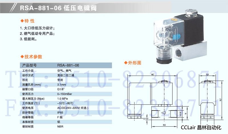 RSA-881-06,低壓電磁閥