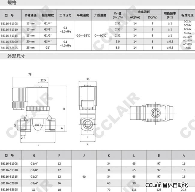 SB116-51308,SB116-51210,SB116-51315,SB116-52020,SB116-52525,二位二通電磁閥