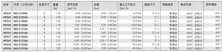 詳細(xì)信息 KPS31,KPS33,KPS35,KPS43,KPS45,KPS37,KPS47,KPS39,重工業(yè)壓力開關(guān)