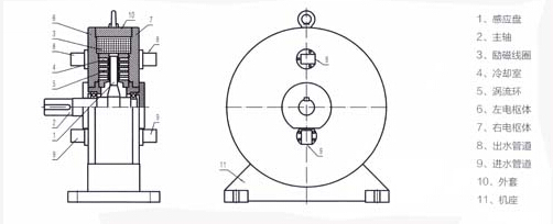 當激磁線圈通上直流電時,其產(chǎn)生的磁通經(jīng)左右電樞體、渦流環(huán)、感應盤,形成閉合磁路,有與轉子形狀猶如直齒輪,當感應盤被原動機帶動旋轉時,渦流環(huán)內(nèi)表面產(chǎn)生疏密相間的磁場,該磁場在渦流環(huán)的表面上任一點呈交變變化,因此在渦流環(huán)內(nèi)表面及一定深度范圍內(nèi)產(chǎn)生渦流,由于渦流形成的磁場與原磁場的相互作用,在感應盤上就產(chǎn)生了制動力矩。