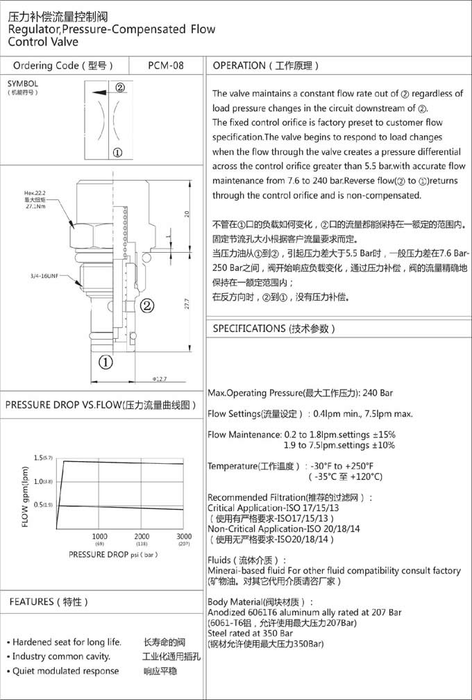 產(chǎn)品: 瀏覽次數(shù):826PCM-08,壓力補償流量控制閥