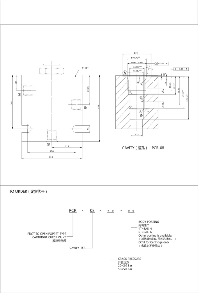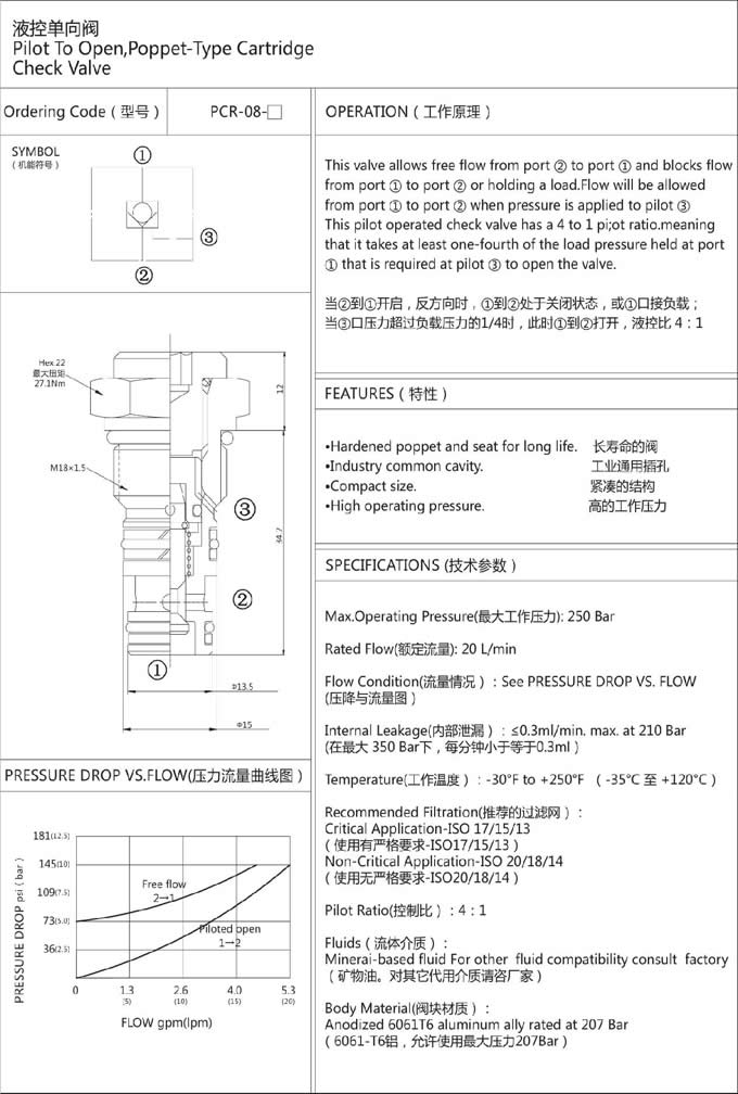PCR-08-20,PCR-08-50,液控單向閥