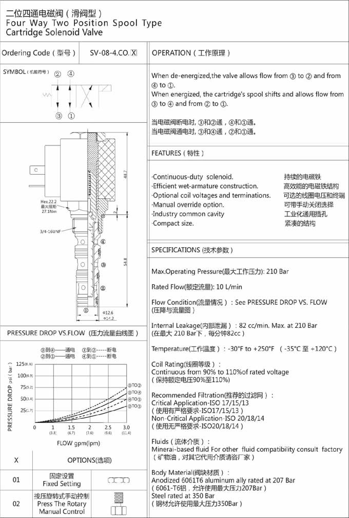 產(chǎn)品: 瀏覽次數(shù):537SV-08-4CO,二位四通電磁閥