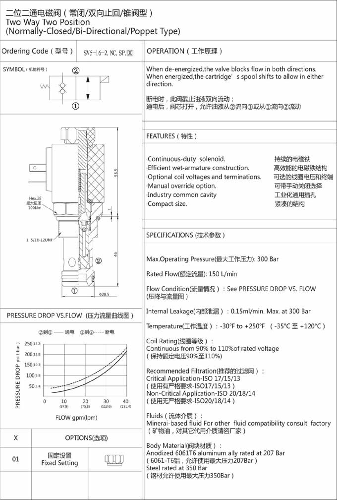 SV5-16-2NCSP,二位二通電磁閥