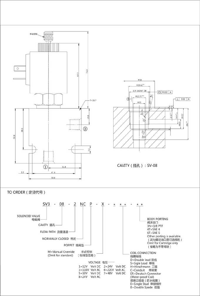 SV3-08-2NCP,二位二通電磁閥