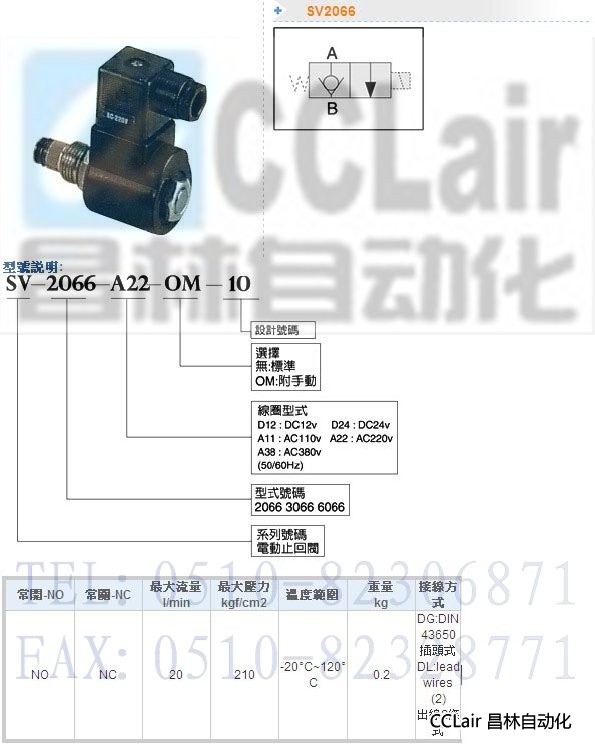 無錫昌林,SV-2066-D24-OM-10,SV-2066-A11-OM-10,