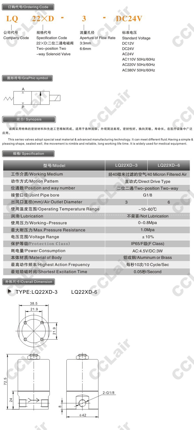 LQ22×D-3,LQ22×D-6,醫(yī)療專用閥