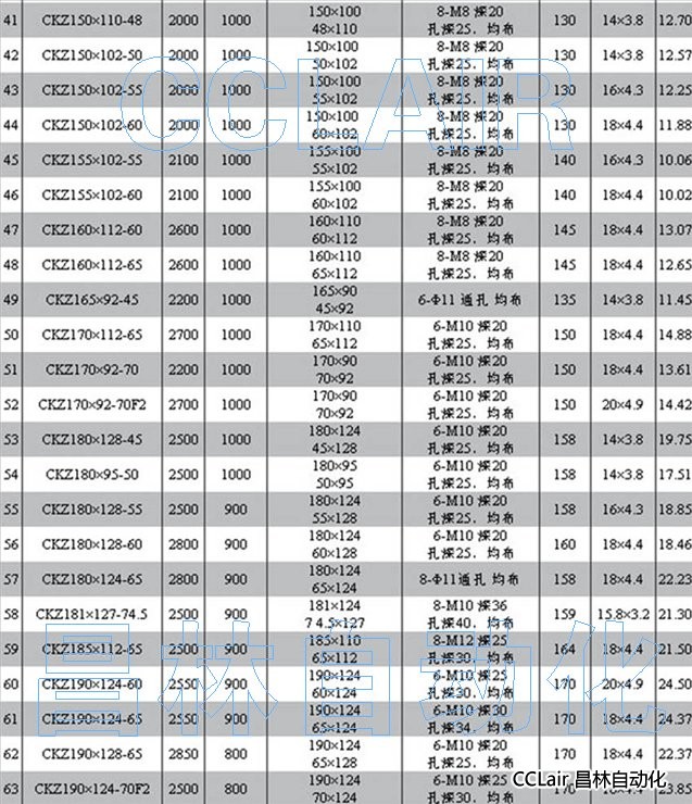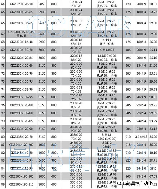 CKZ125*92-45,CKZ125*92-45F2,CKZ130*92-38,CKZ130*92-45,CKZ130*63-48,CKZ130*68-52,CKZ136*95-35,CKZ136*95-38,CKZ136*95-45,CKZ136*95-50,CKZ136*95-50F2,CKZ136.5*95-45,CKZ136*95.5-50.8,CKZ150*110-48,CKZ150*102-50,CKZ150*102-55,CKZ150*102-60,CKZ155*102-55,CKZ155*102-60,CKZ160*112-60,CKZ160*112-65,CKZ165*92-45,CKZ170*112-65,CKZ170*92-70,CKZ1701*92-70F2,CKZ180*128-45,CKZ180*95-50,CKZ180*128-55,CKZ180*128-60,無錫昌林,CKZ180*124-65,CKZ181*127-74.5,CKZ185*112-65,CKZ190*124-60,CKZ190*124-65,CKZ190*128-65,CKZ190*124-70F2,CKZ190*128-70,CKZ200*128-65,CKZ200*135-65,CKZ200*150-65F2,CKZ210*116-48,CKZ210*132-70,CKZ220*120-85,230*120-60,CKZ230*120-70,CKZ230*120-75,CKZ230*132-70,CKZ230*132-75,CKZ230*120-80,CKZ230*132-80,CKZ230*120-85,CKZ230*120-90,CKZ238*120-70,CKZ245*120-100,CKZ250*140-80,CKZ270*115-90,CKZ300*160-100,CKZ300*160-110
