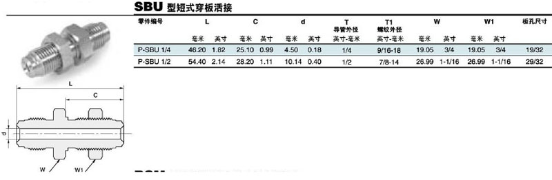 詳細(xì)信息 P-SBU-1/4,P-SBU-1/2,短式穿板活接頭