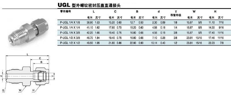 P-UGL-1/4*1/8,P-UGL-1/4*1/4,P-UGL-1/4*3/8,P-UGL-1/2*3/8,P-UGL-1/2*1/2,密封壓蓋直通接頭