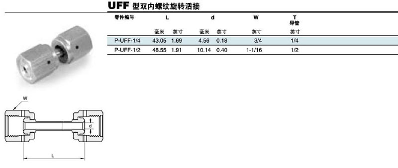 詳細信息 P-UFF-1/4,P-UFF-1/2,內(nèi)螺紋旋轉(zhuǎn)活接頭