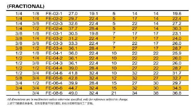 FE-16-3,FE-16-4,FE-16-6,FE-18-3,FE-18-4,FE-18-6,FE-20-6,FE-22-6,FE-25-4,