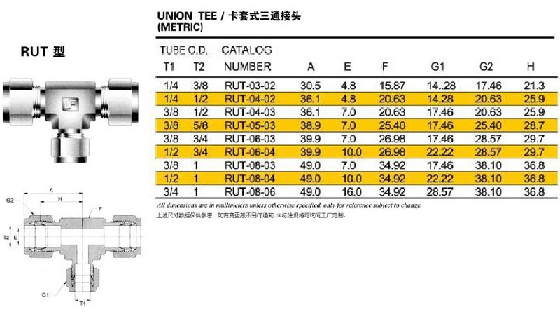 RUT-03-02,RUT-04-02,RUT-04-03,RUT-05-03,RUT-06-03,RUT-06-04,卡套式三通接頭