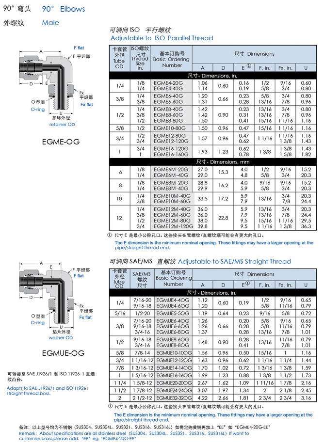EGME4,EGME6,EGME8,EGME10,EGME12,EGME16,EGMUE4,EGMUE5,EGMUE6,EGMUE8,直角可調(diào)向卡套接頭