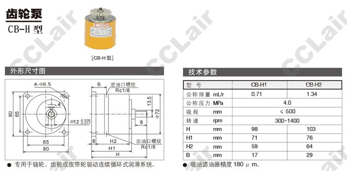 型號: CB-H1,CB-H2,齒輪泵