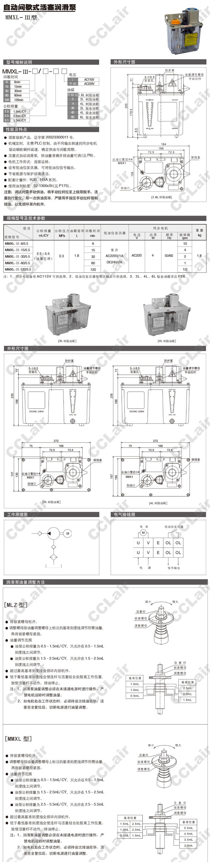 MMXL-III-6/5.5,MMXL-III-15/5.5,MMXL-III-30/5.5,MMXL-III-60/5.5,MMXL-III-120/5.5,自動(dòng)間歇式活塞潤(rùn)滑泵