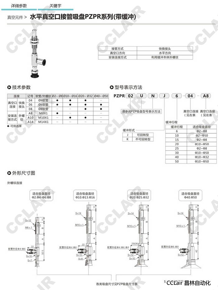 PZPR32UK6,PZPR40UK6,PZPR50UK6,PZPR16UJ6,PZPR04UK6,PZPR25UK6,水平真空口接管吸盤
