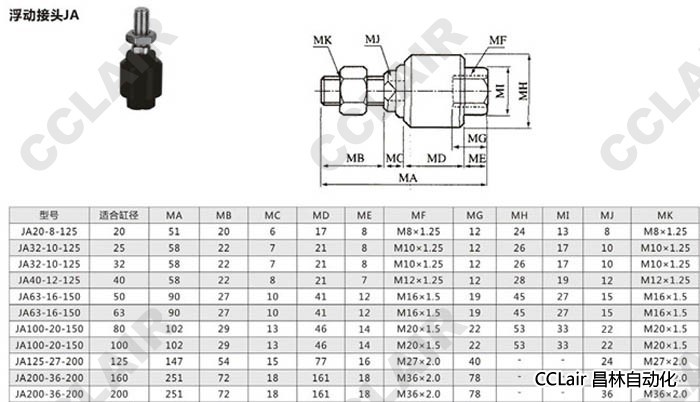 JA20-8-125,JA32-10-125,JA40-12-125,JA63-15-150,JA100-20-150,JA125-27-200,JA200-36-200,