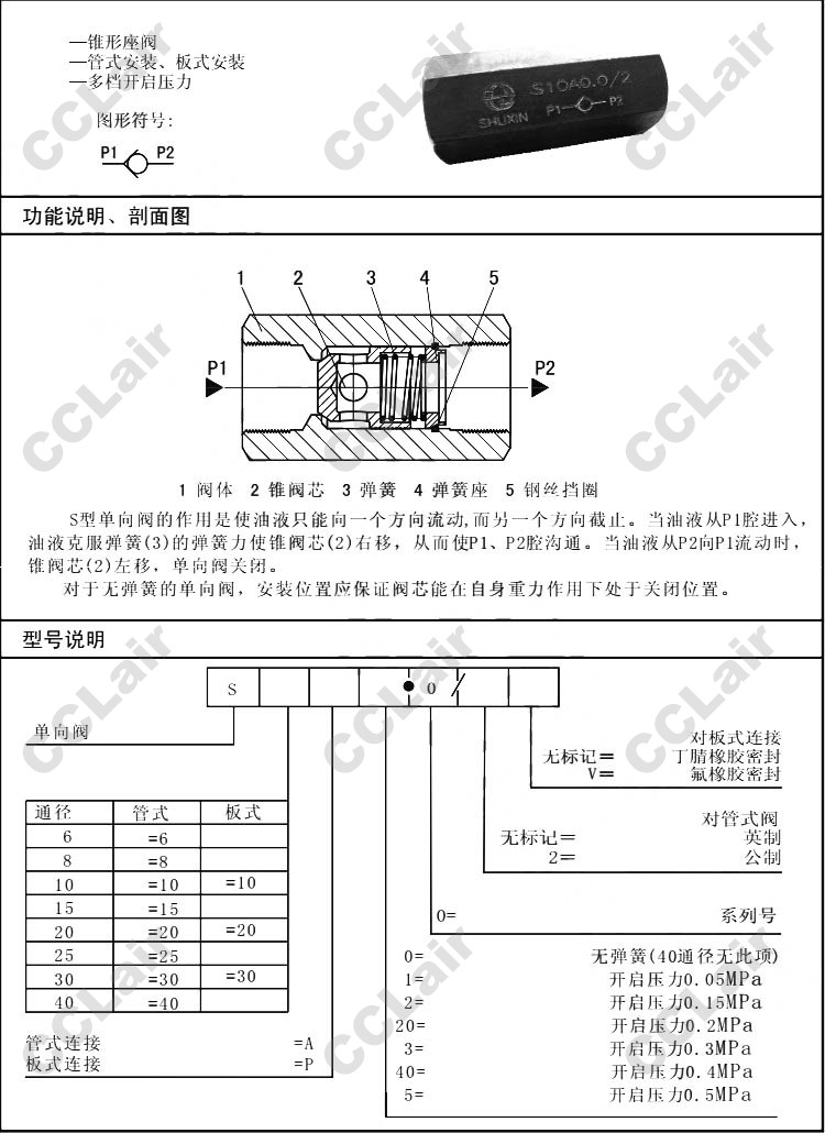 S6A,S8A,S10A,S15A,S20A,S25A,S30A,S40A,S10P,S20P,S30P,S6A0.0/2,S8A1.0/2,S10P0.0/2,單向閥