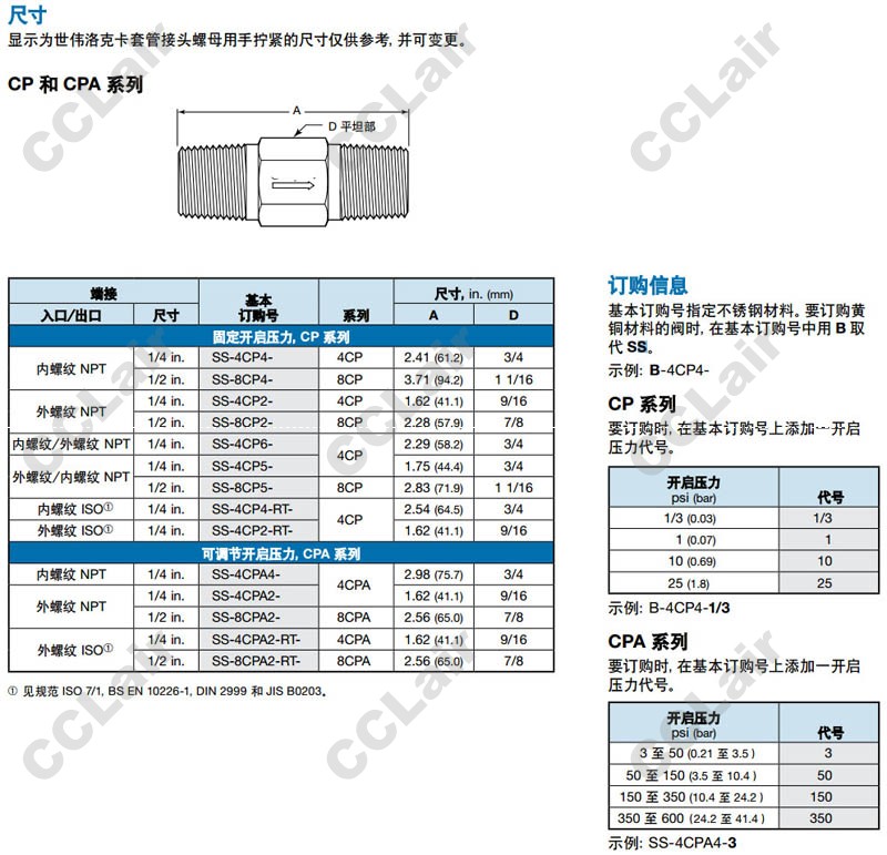 SS-4CPA4-3,SS-4CPA2-3,SS-8CPA2-3,世偉洛克(swagelok),SS-4CPA2-RT-3,SS-8CPA2-RT-3,