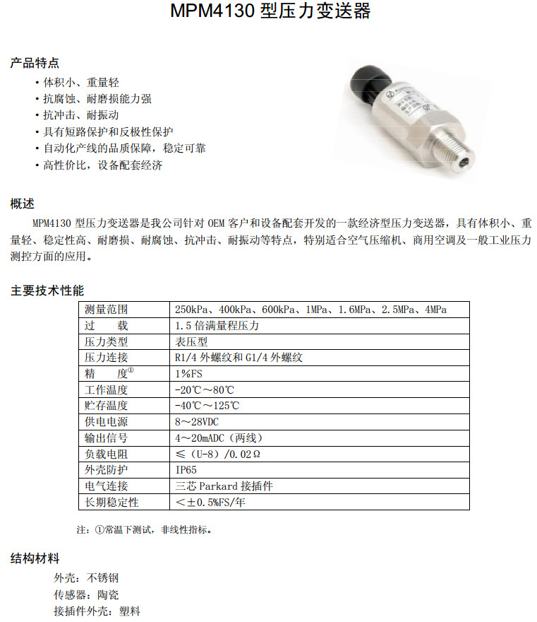 您當(dāng)前的位置:首頁 » 產(chǎn)品&解決方案 » MPM4130-250E,MPM4130-400E,MPM4130-600E,MPM4130-1E,MPM4130-1.6E,壓力變送器