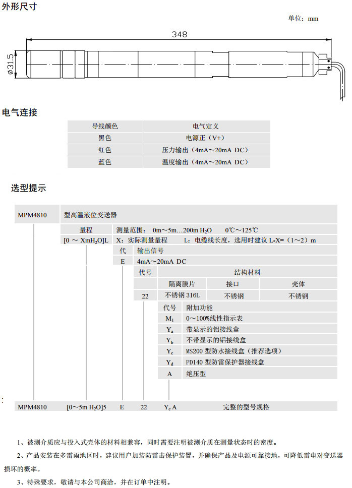 詳細(xì)信息 MPM4810-0,MPM4810-5,高溫液位變送器