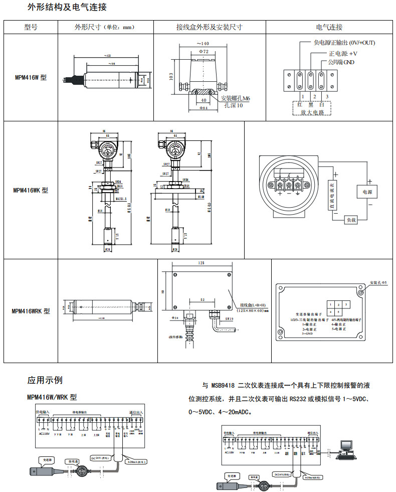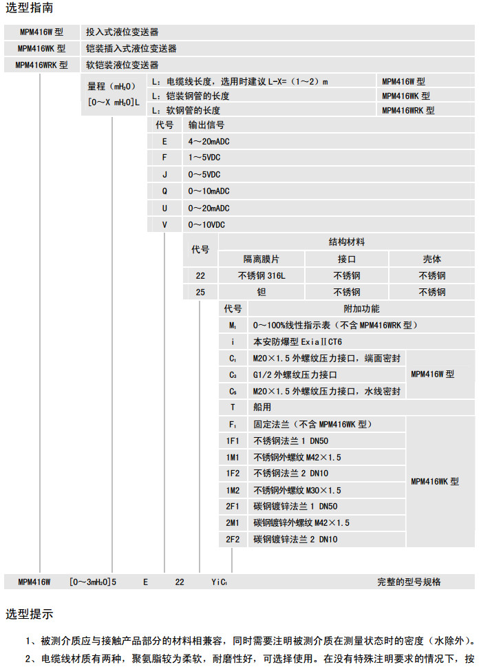 詳細(xì)信息 MPM416W-1,MPM416W-2,MPM416WK-1,MPM416WK-2,MPM416WRK-5,液位變送器