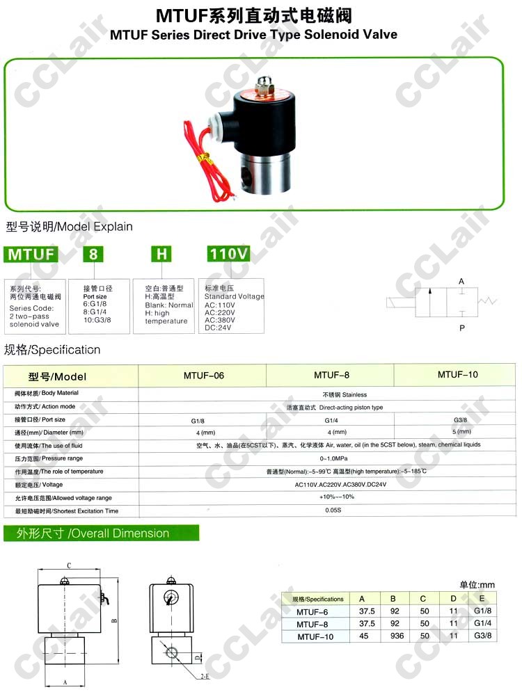MTUF-06,MTUF-08,MTUF-10,直動式電磁閥,無錫昌林