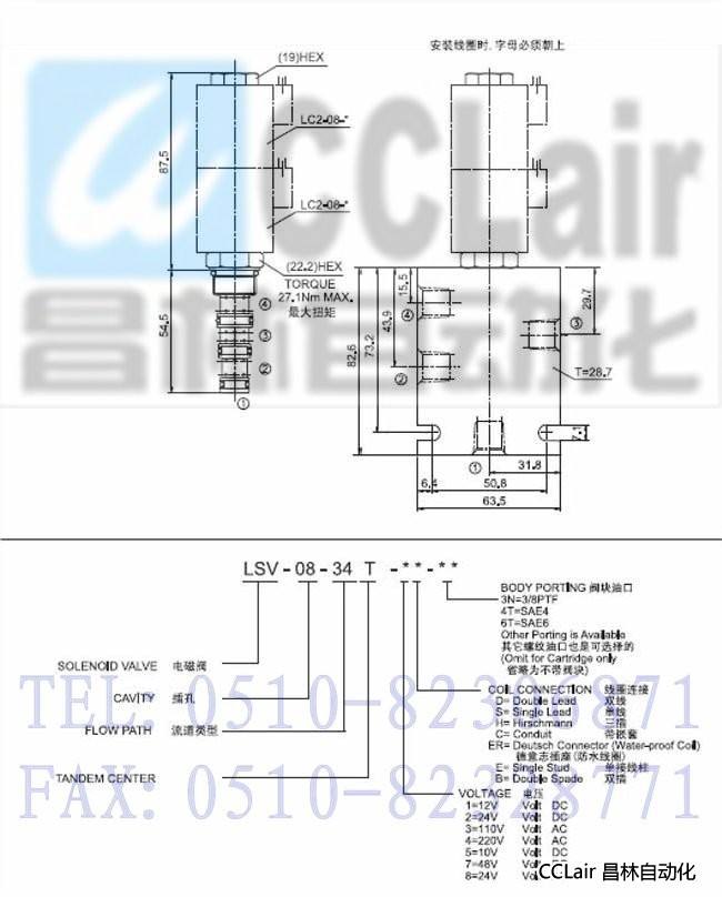 LSV-08-34T-8D,LSV-08-34T-8H,LSV-08-34T-8C,LSV-08-34T-8S,三位四通電磁閥