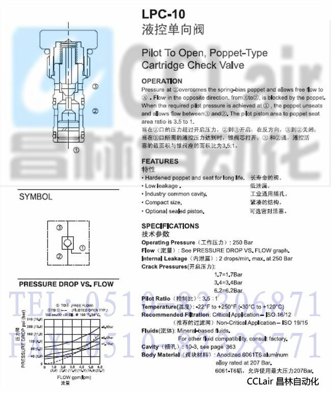 LPC-10-V-1.7,LPC-10-V-3.4,LPC-10-V-6.2,液控單向閥,