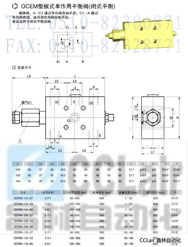 OCEM-1/4-27,OCEM-1/4-43,OCEM-1/4-88,板式單作用平衡閥(閉式平衡)