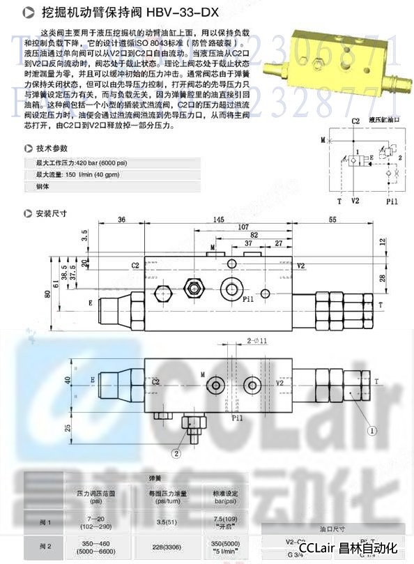 HBV-33-DX,挖掘機動臂保持閥