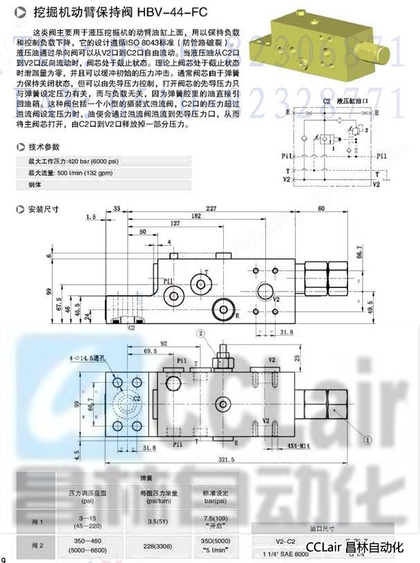 HBV-44-FC,挖掘機動臂保持閥