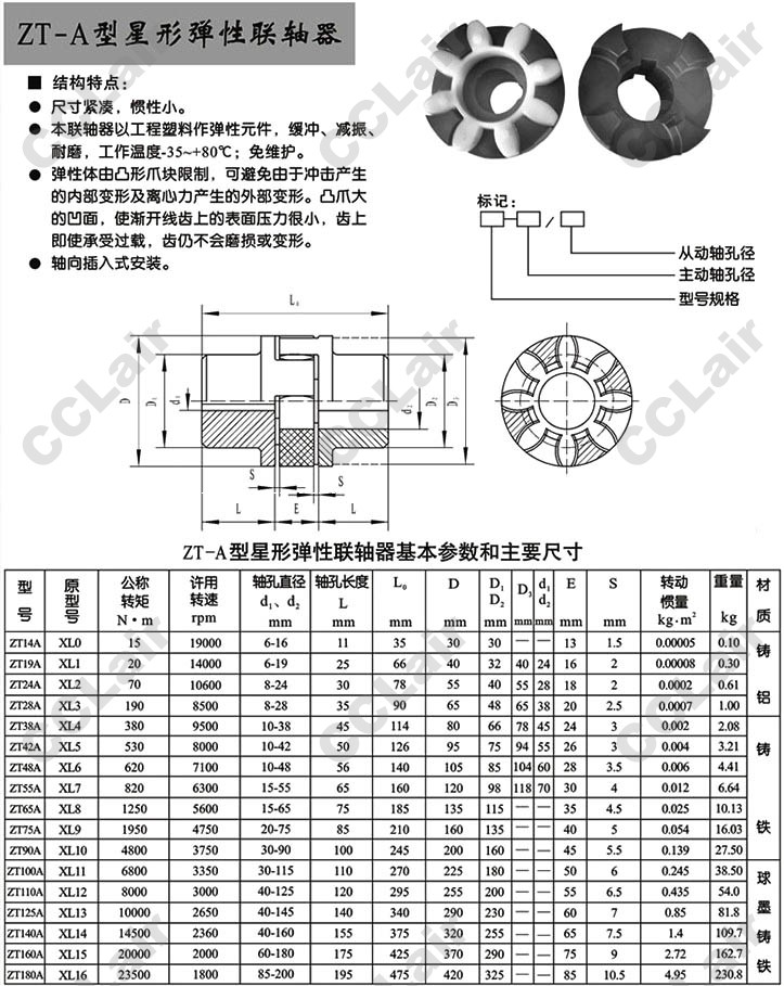 ZT14A,ZT19A,ZT24A,ZT28A,ZT38A,ZT42A,ZT48A,XL0,XL1,XL2,XL3,XL4,XL5,XL6,星型彈性聯(lián)軸器