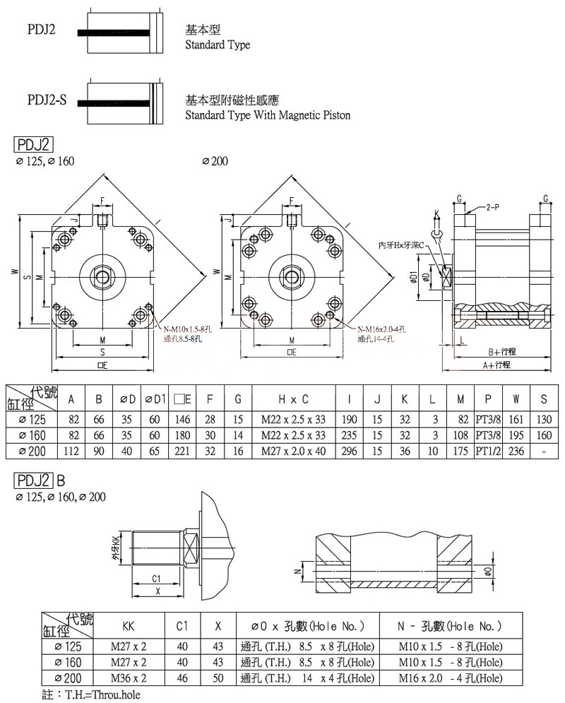 PDJ2-125,PDJ2-160,PDJ2-200,PDJ2-D-125,PDJ2-D-160,panix大型治具氣缸