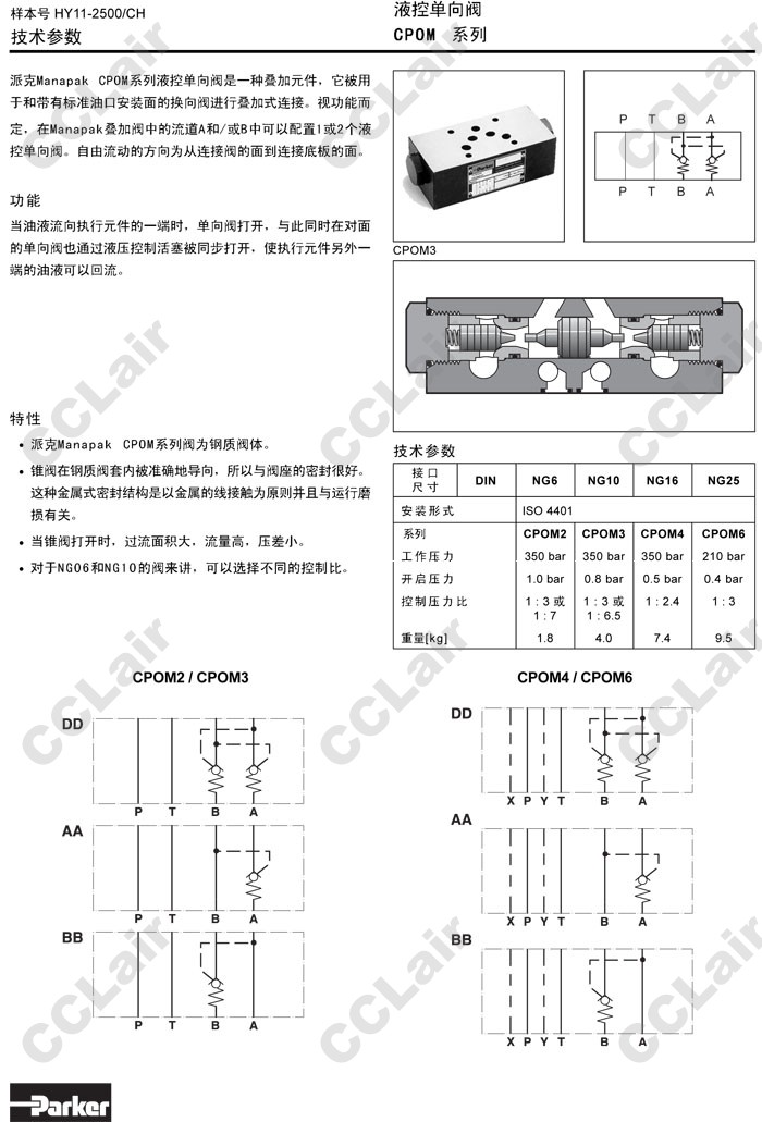 CPOM2AA,CPOM3AA,CPOM6AA,CPOM2BB,CPOM3BB,CPOM6BB,CPOM2DD,CPOM3DD,CPOM6DD,Parker液控單向閥
