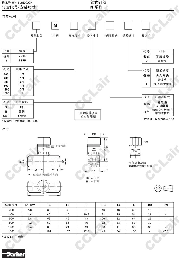 詳細(xì)信息 N200S,N400S,N600S,N800S,N1200S,N1600S,N200B,N400B,N600B,N800B,N1200B,N1600B,Parker管式針閥