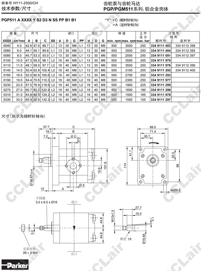 PGP511B0310CS4D3,Parker PGP511B0310AA1H1,PGP511B0310AC1H2,PGP511B0310AC1H3,PGP511B0310AF1D4,PGP511B0310AF1Q2,