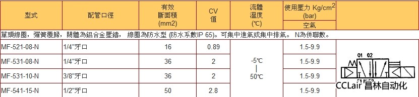 MF-511-06-N,MF-521-08-N,MF-531-08-N,MF-531-10-N,MF-541-15-N,電磁閥