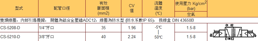 詳細信息 CS-5V06-D,CS-5V08-D,CS-5208-D,CS-5210-D,電磁閥
