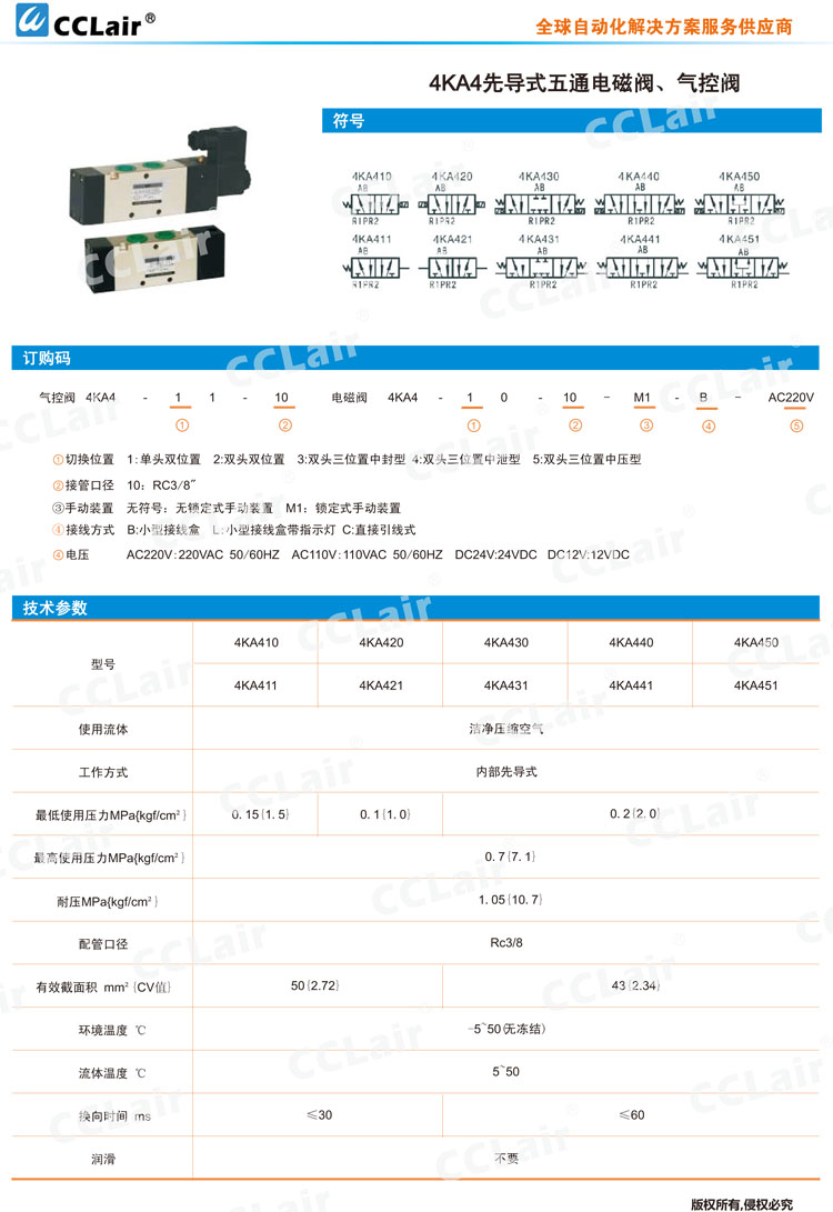 詳細(xì)信息 4KA411-10,4KA421-10,4KA431-10,4KA441-10,4KA451-10,先導(dǎo)式五通氣控閥