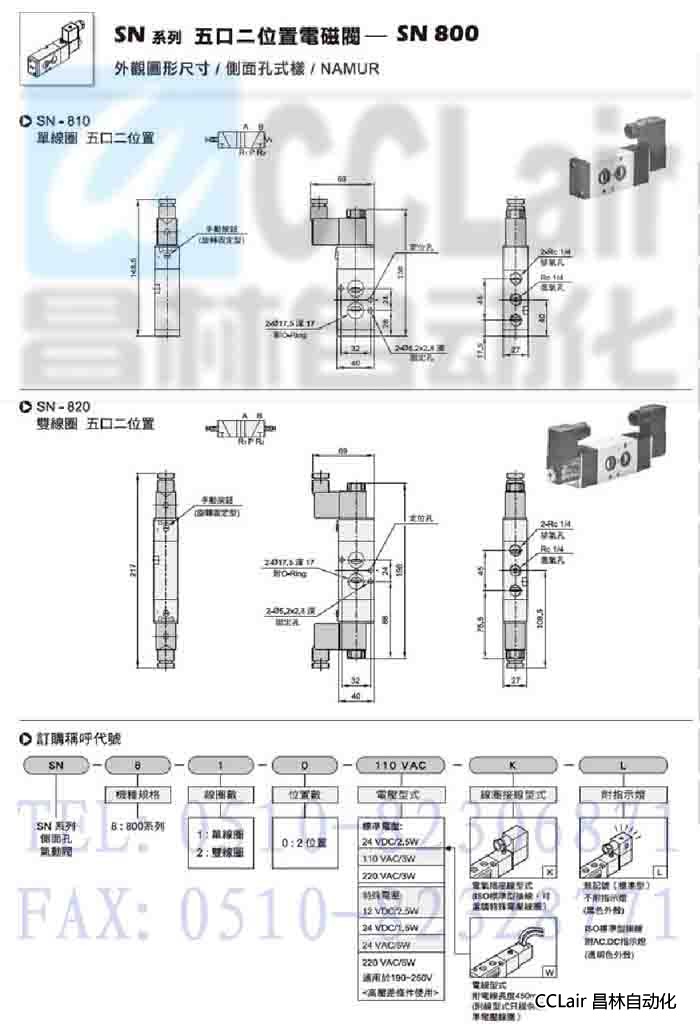 SN-8102,SN-8202,五口二位電磁閥