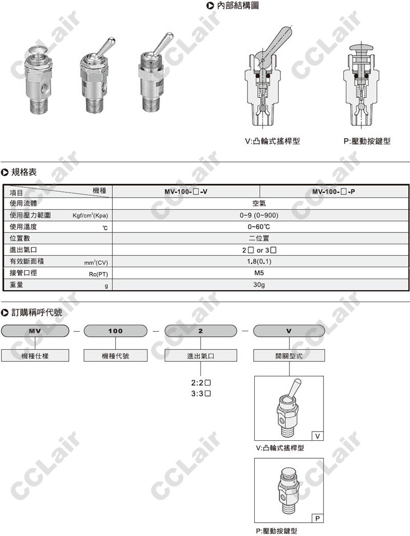 詳細(xì)信息 氣立可(chelic),MV-100-2-V,MV-100-3-V,MV-100-2-P,MV-100-3-P,手動(dòng)閥
