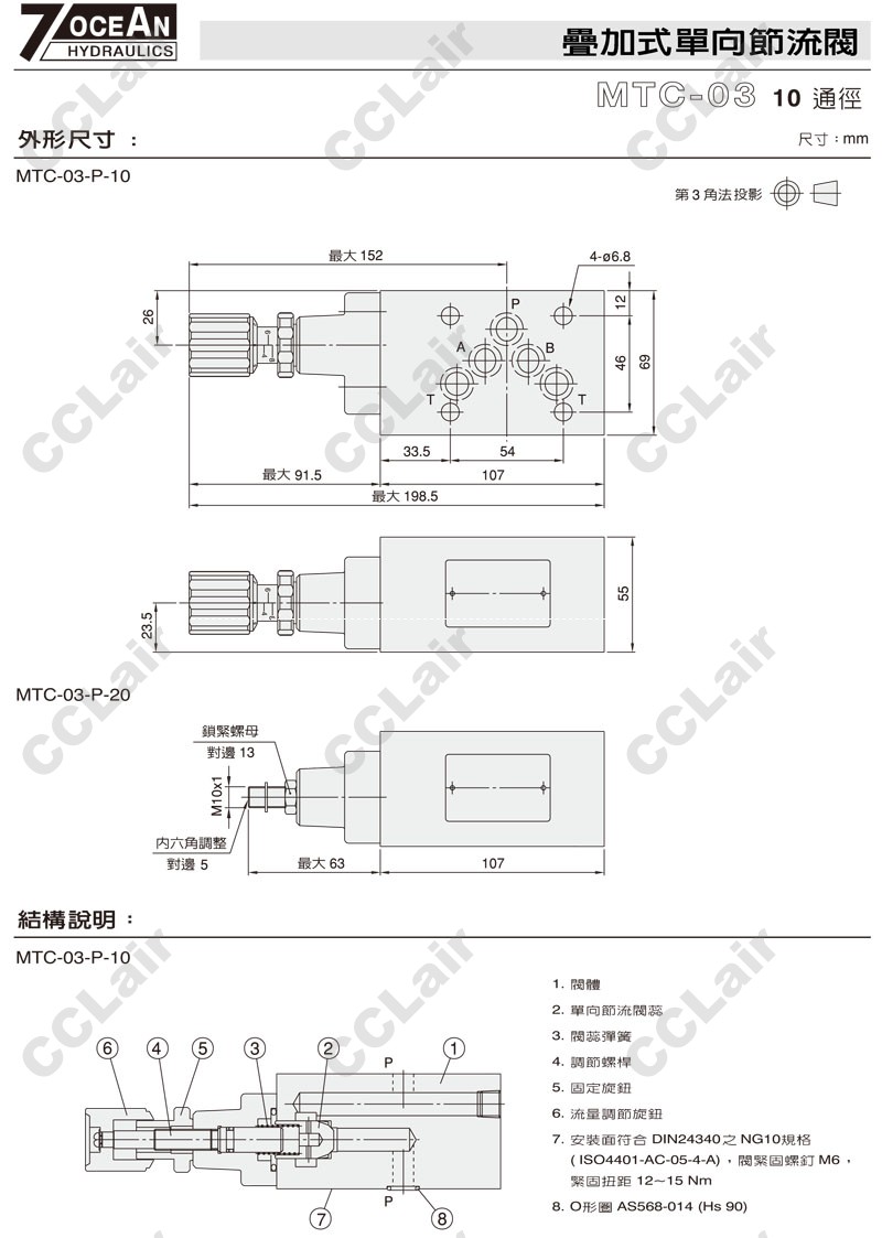MTC-03-P-10,MTC-03-P-20,7OCEAN七洋疊加式單向節(jié)流閥