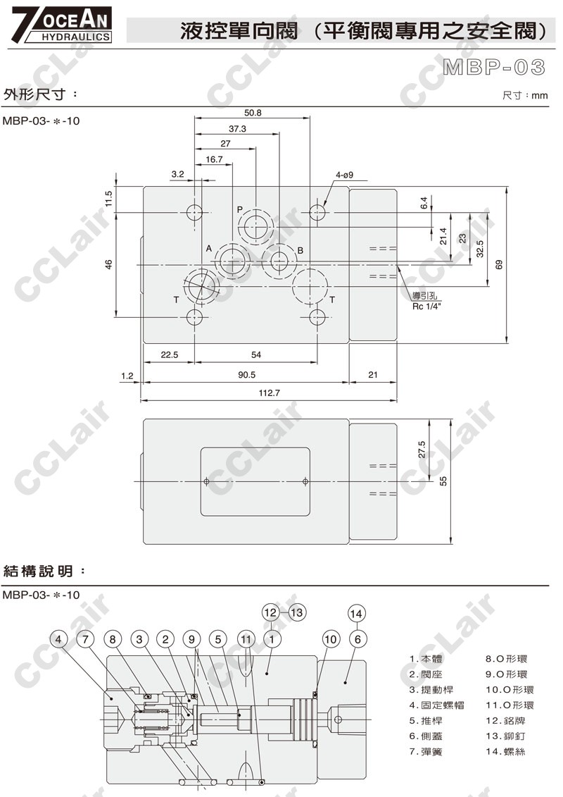 MBP-03-1-E-10,MBP-03-2-E-10,MBP-03-1-10,MBP-03-2-10,7OCEAN七洋疊加式液控單向閥