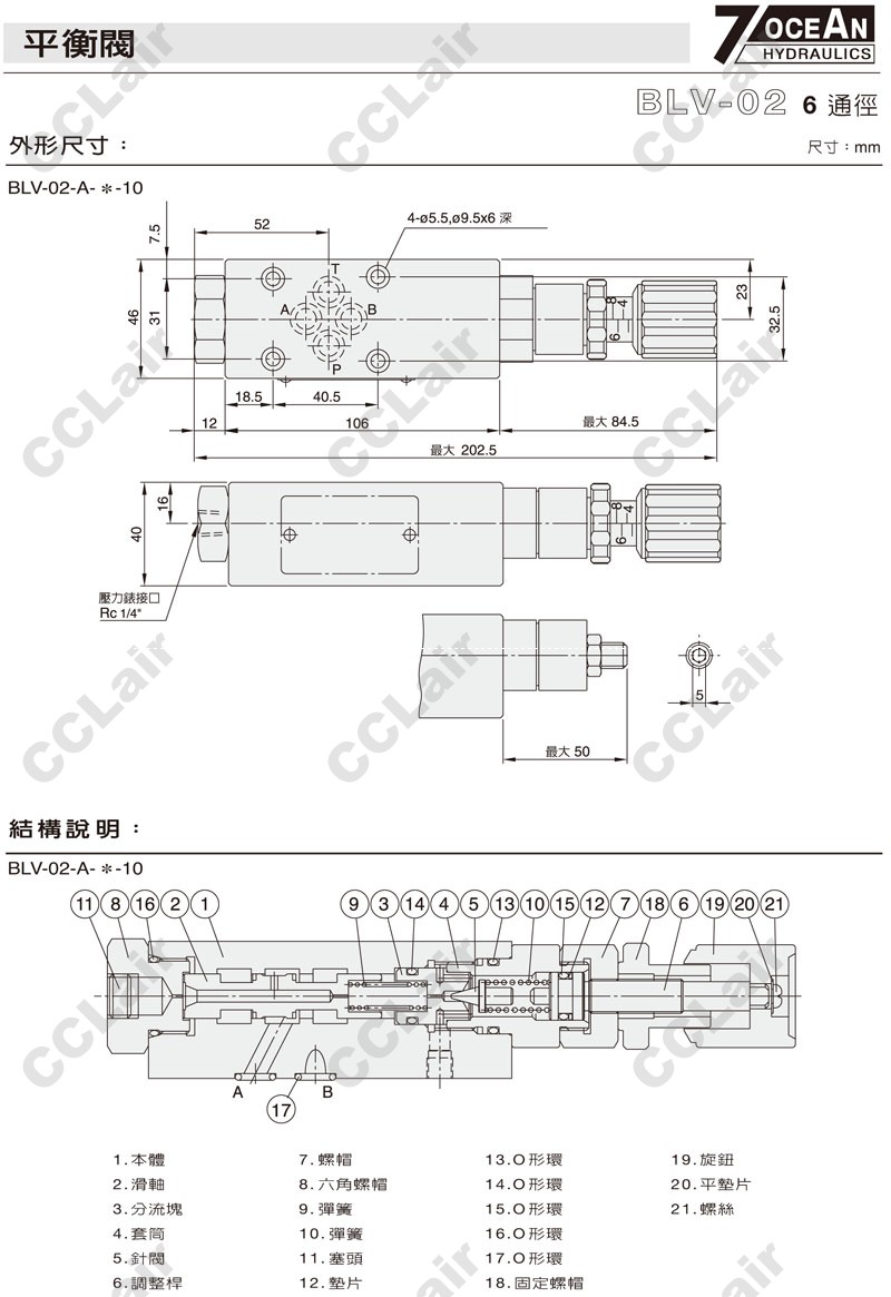 BLV-02-A-1-10,BLV-02-A-2-10,BLV-02-A-1-20,BLV-02-A-2-20,7OCEAN七洋平衡閥