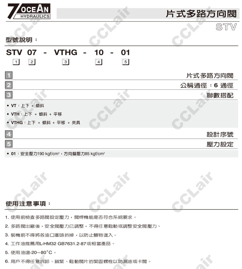 STV07-VT-10-01,STV07-VTH-10-01,STV07-VTHG-10-01,7OCEAN七洋片式多路換向閥