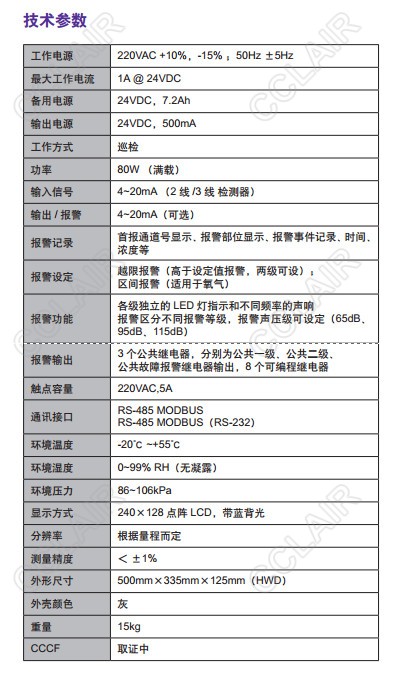 4~20mA同步輸出,RS485 Modbus及RS232,8個(gè)可編程及3個(gè)公共開關(guān)量輸出(關(guān)斷延時(shí)0~60s可設(shè)定),3個(gè)公共開關(guān)量分別為一級(jí)報(bào)警、二級(jí)報(bào)警和故障,可方便接入PLC/DCS等工控系統(tǒng)及外部設(shè)備