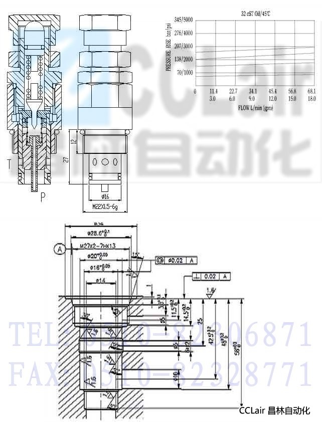 當(dāng)P口壓力未達(dá)到彈簧設(shè)定壓力的90%時(shí),P到T不通超過(guò)90%并繼續(xù)升高時(shí),P到T開(kāi)始溢流,直到彈簧的最高設(shè)定壓力。