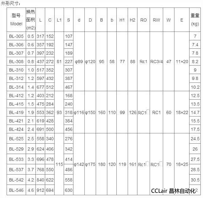 詳細信息 BL-305,BL-306,BL-307,BL-308,BL-310,BL-312,BL-314,BL-412,BL-546,冷卻器